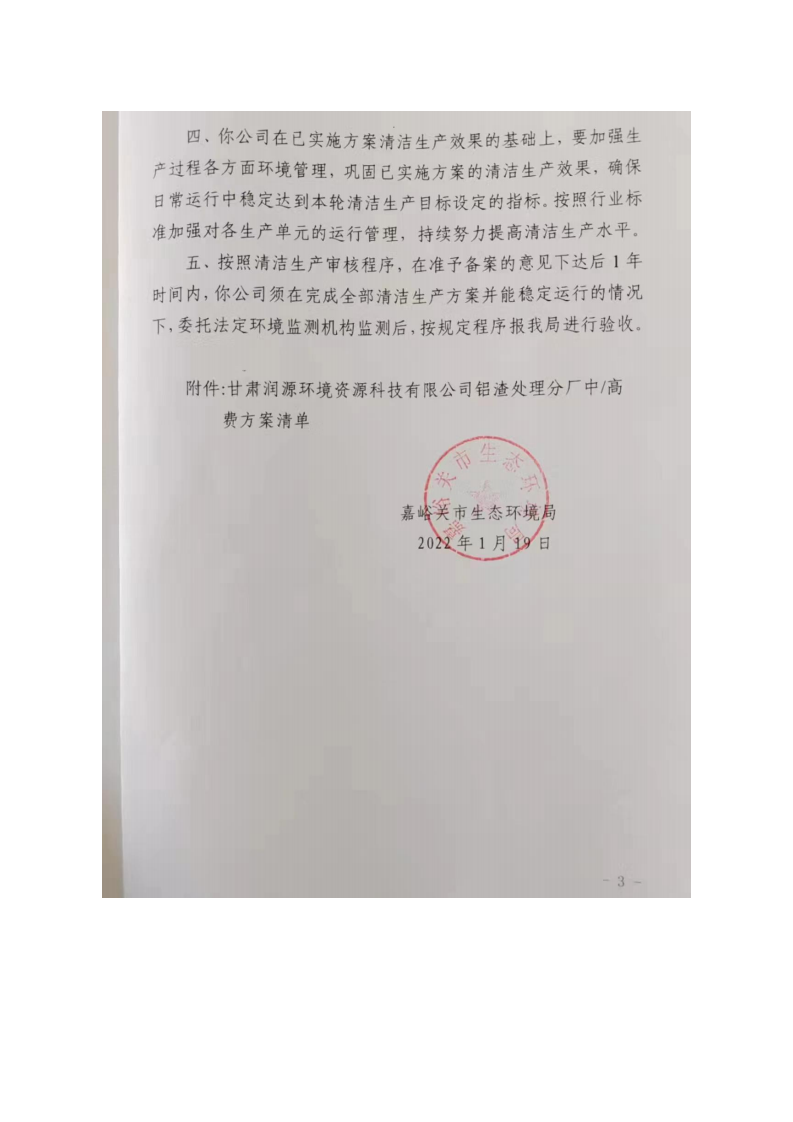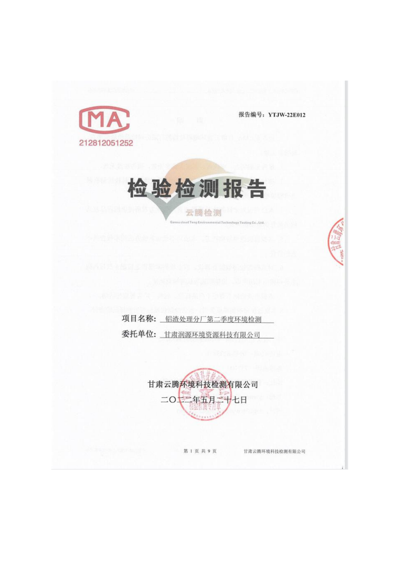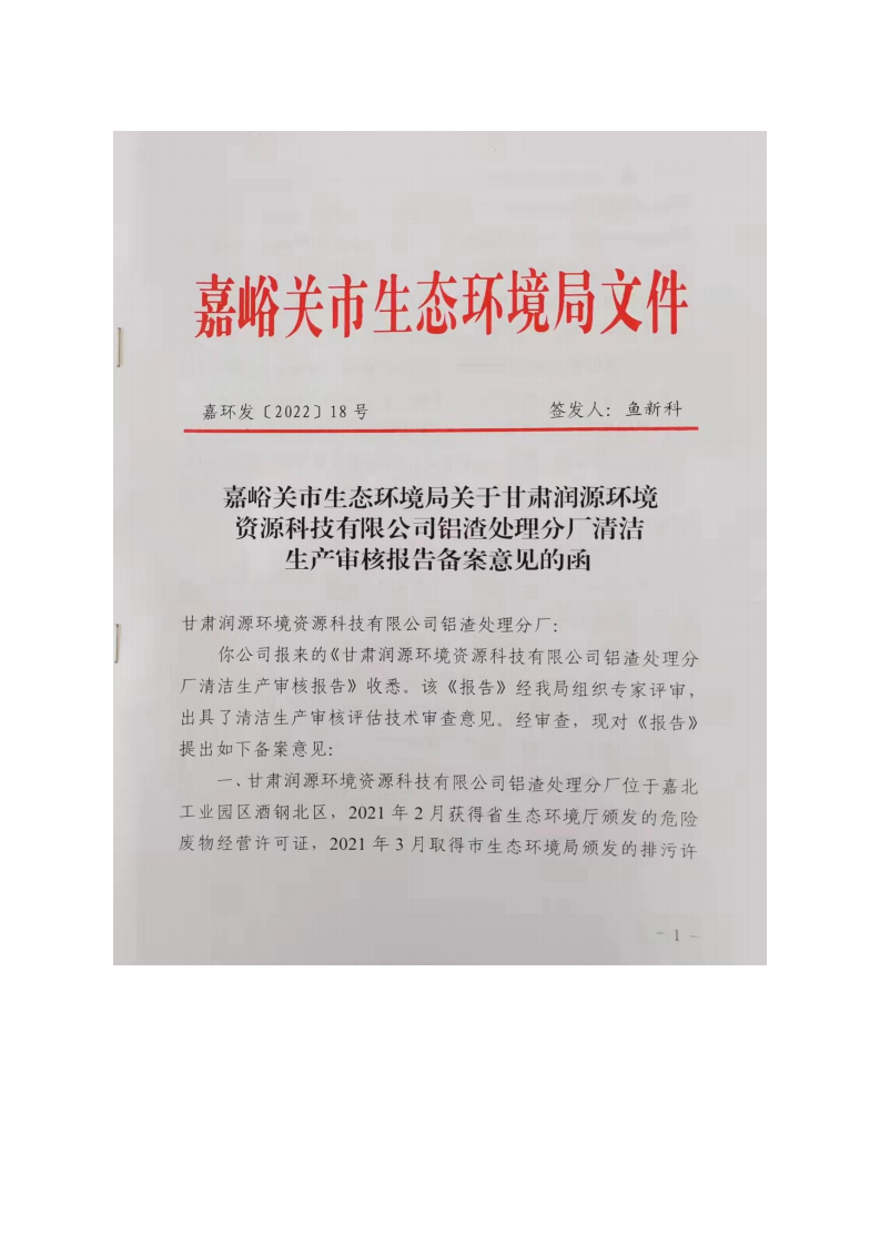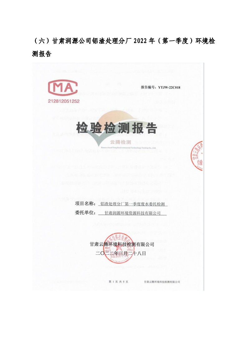 甘肅潤(rùn)源環(huán)境資源科技有限公司鋁渣處理分廠2022年環(huán)境信息公開