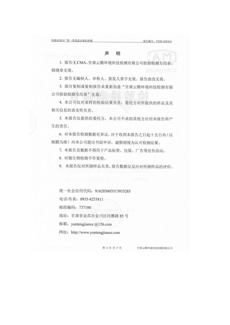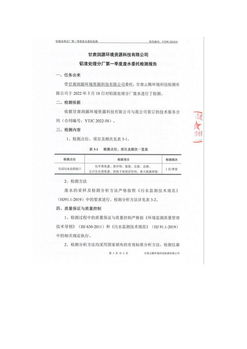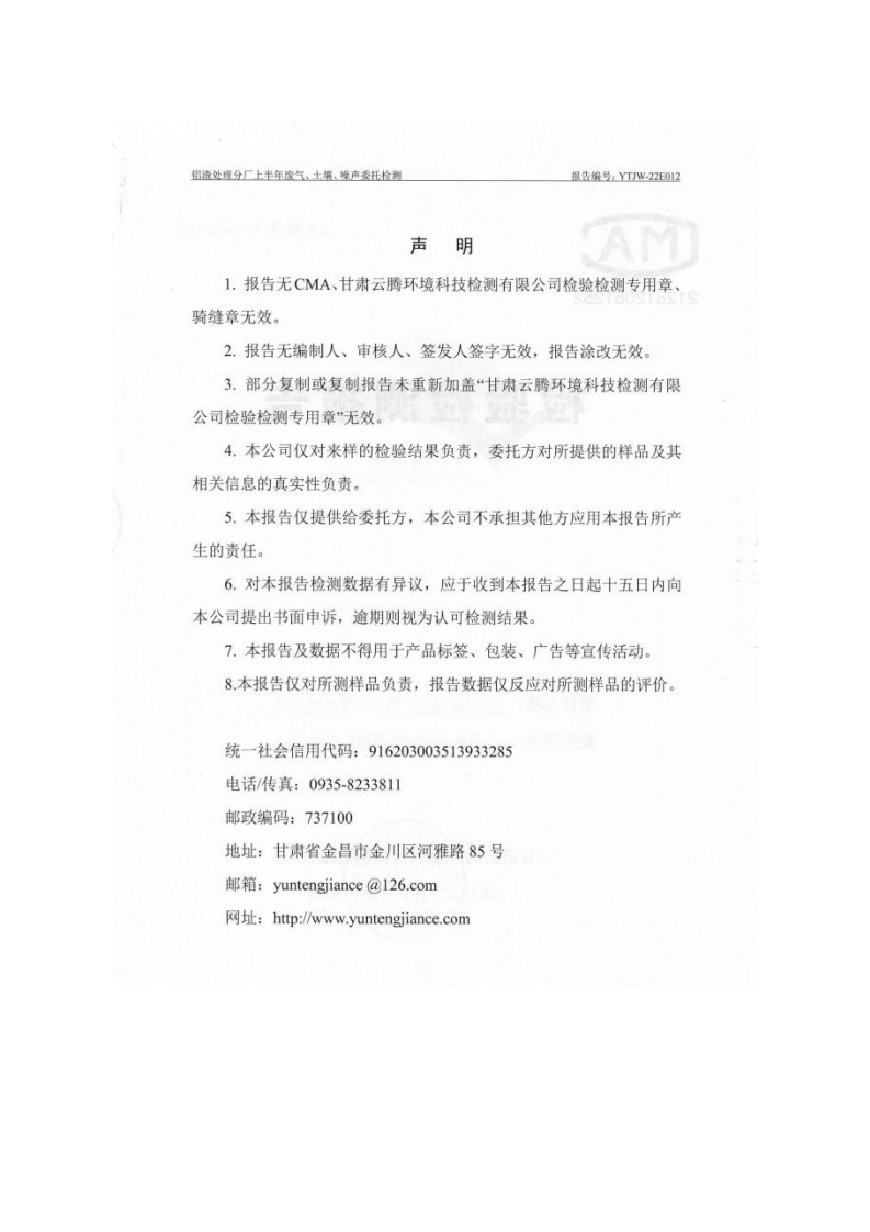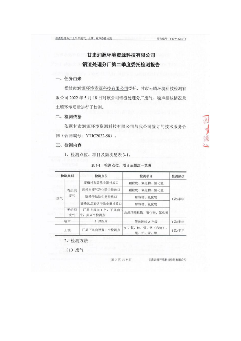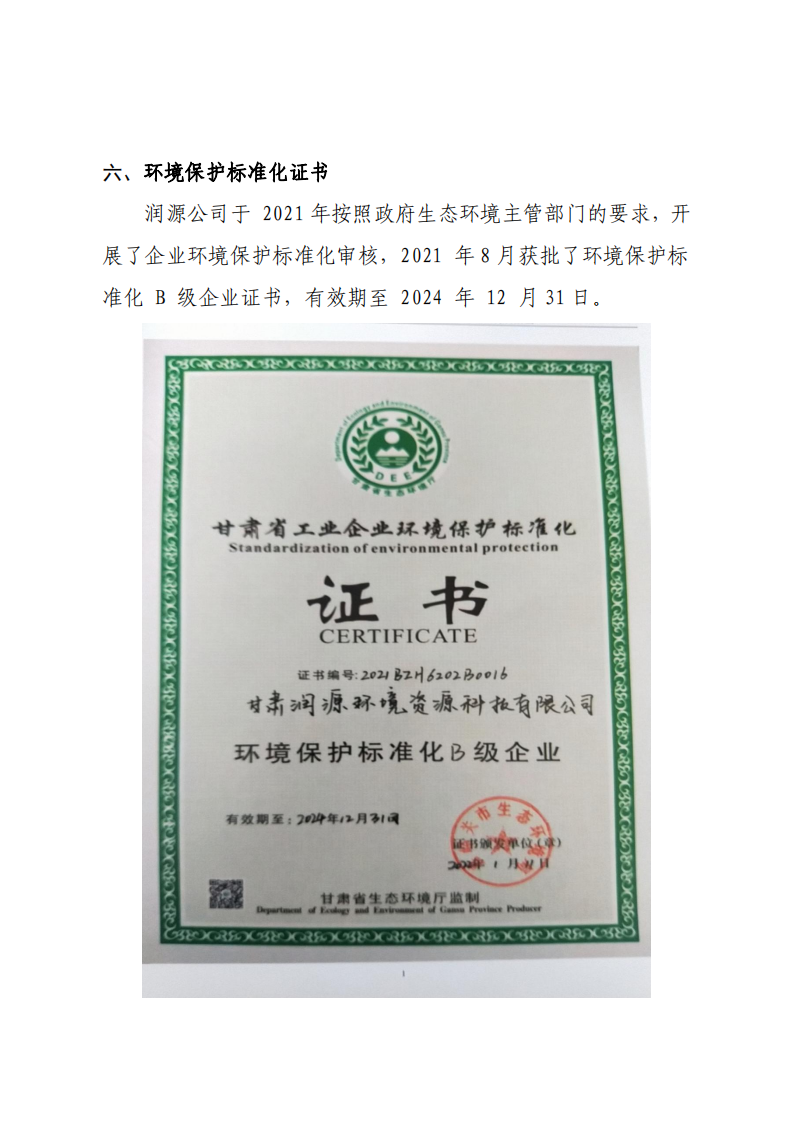 甘肅潤(rùn)源環(huán)境資源科技有限公司鋁渣處理分廠2022年環(huán)境信息公開
