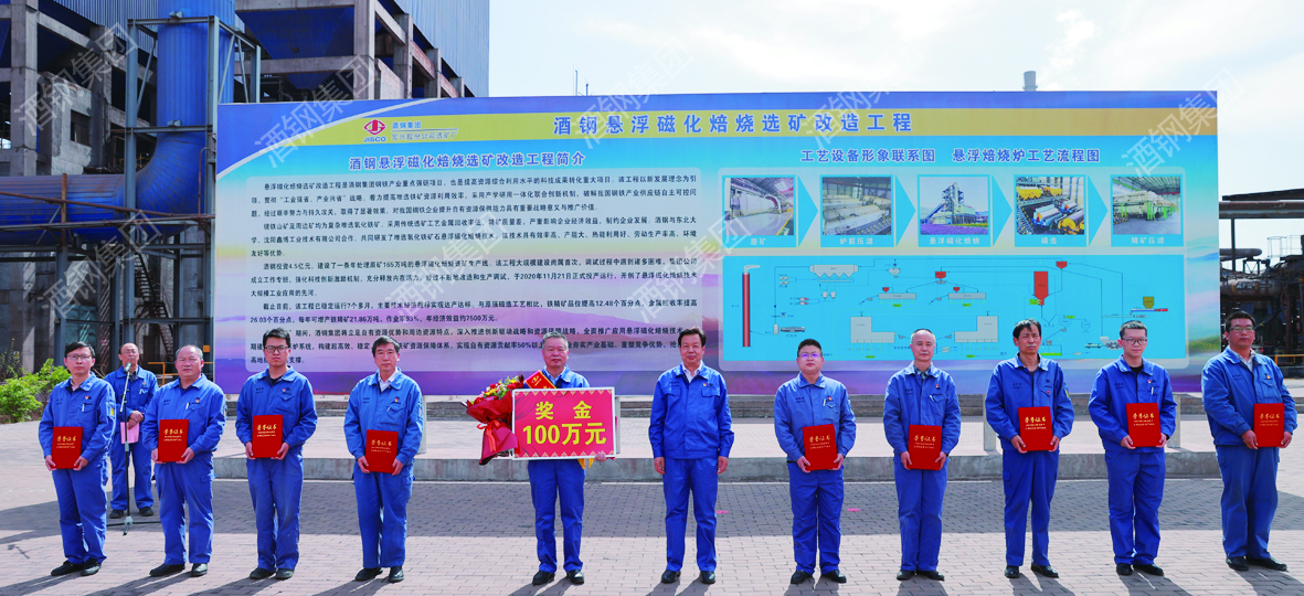 難選鐵礦資源高效利用攻關(guān)是幾代酒鋼選礦技術(shù)人員的不懈追求。手捧獎(jiǎng)牌,難選氧化鐵礦石懸浮磁化焙燒關(guān)鍵技術(shù)研究與工業(yè)應(yīng)用項(xiàng)目負(fù)責(zé)人陳毅琳心情十分激動(dòng):“懸浮磁化焙燒技術(shù)具有效率高、產(chǎn)能大、熱能利用好、勞動(dòng)生產(chǎn)率高、環(huán)境友好等優(yōu)勢,實(shí)現(xiàn)工業(yè)化應(yīng)用后,與原強(qiáng)磁選工藝相比,鐵精礦品位提高11.55個(gè)百分點(diǎn),金屬回收率提高26.07個(gè)百分點(diǎn),真正實(shí)現(xiàn)了鐵礦資源的吃干榨凈,大幅度提高了難選鐵礦資源的高效利用水平。”目前,項(xiàng)目團(tuán)隊(duì)正在大力推廣應(yīng)用該項(xiàng)目成果,努力把“盆景”變成“風(fēng)景”,為公司高質(zhì)量發(fā)展作出貢獻(xiàn)。